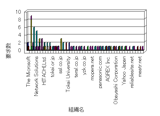 組織ユーザーにインターネット接続を提供する、商用または非営利団体、学術・行政機関などの、インターネット ドメイン で識別される団体や組織です。Microsoft Site Server Analysis は同じ組織に登録されたすべてのドメインを 1 つの組織としてグループ化します。ドメインがデータベースで使用できない場合は、1 つのインターネット ドメインが 1 つの組織を識別するのに使用されます。