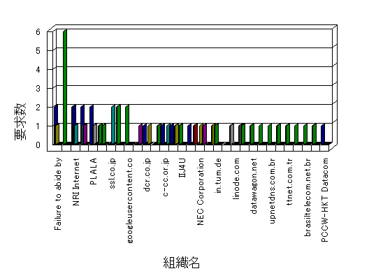 組織ユーザーにインターネット接続を提供する、商用または非営利団体、学術・行政機関などの、インターネット ドメイン で識別される団体や組織です。Microsoft Site Server Analysis は同じ組織に登録されたすべてのドメインを 1 つの組織としてグループ化します。ドメインがデータベースで使用できない場合は、1 つのインターネット ドメインが 1 つの組織を識別するのに使用されます。