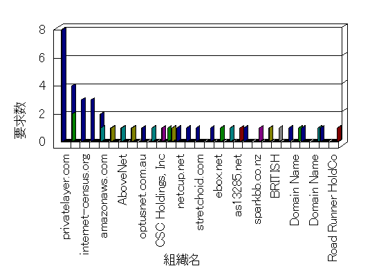 組織ユーザーにインターネット接続を提供する、商用または非営利団体、学術・行政機関などの、インターネット ドメイン で識別される団体や組織です。Microsoft Site Server Analysis は同じ組織に登録されたすべてのドメインを 1 つの組織としてグループ化します。ドメインがデータベースで使用できない場合は、1 つのインターネット ドメインが 1 つの組織を識別するのに使用されます。