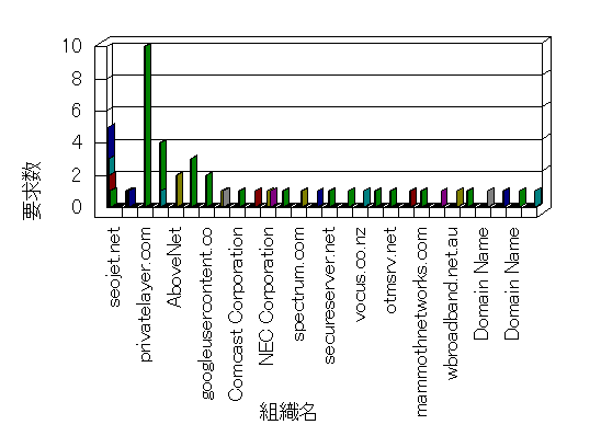 参照組織のサイトには、このサイトにリンクするページがあります。グラフでは、このサイトへのアクセス数に基づいた、上位 10 組織を示します。